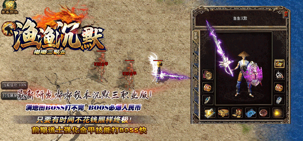 全新技能强化系统★道士召唤金甲强化后后超强,可以带两个金甲★前期建议玩道士★打大小魔王超快★